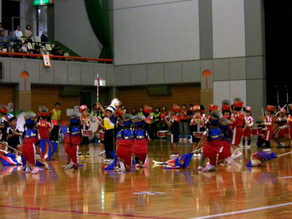 年長の日本太鼓隊とマーチング隊の堂々とした演奏・演技で幕開けした運動会。