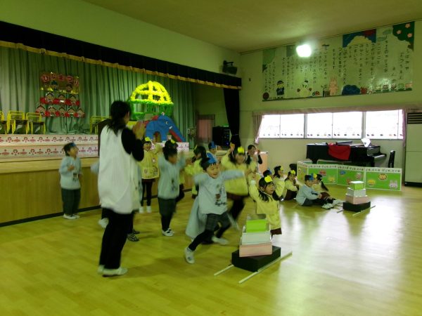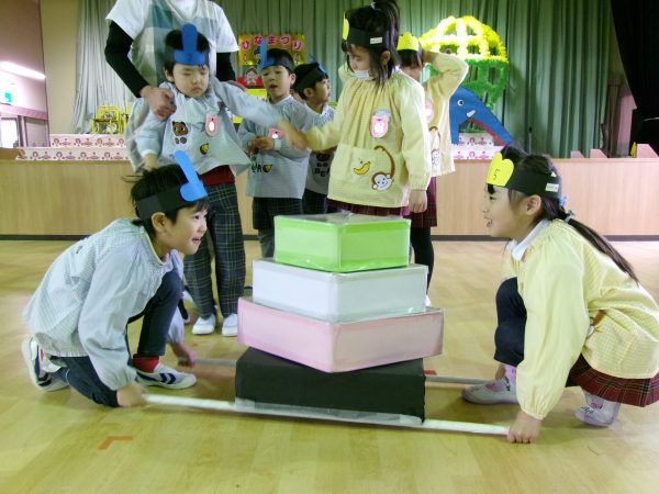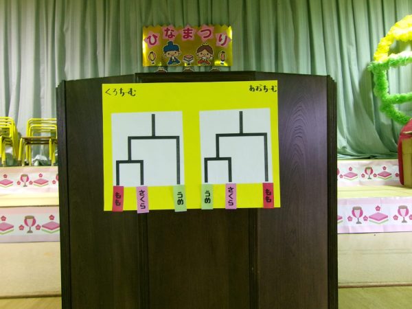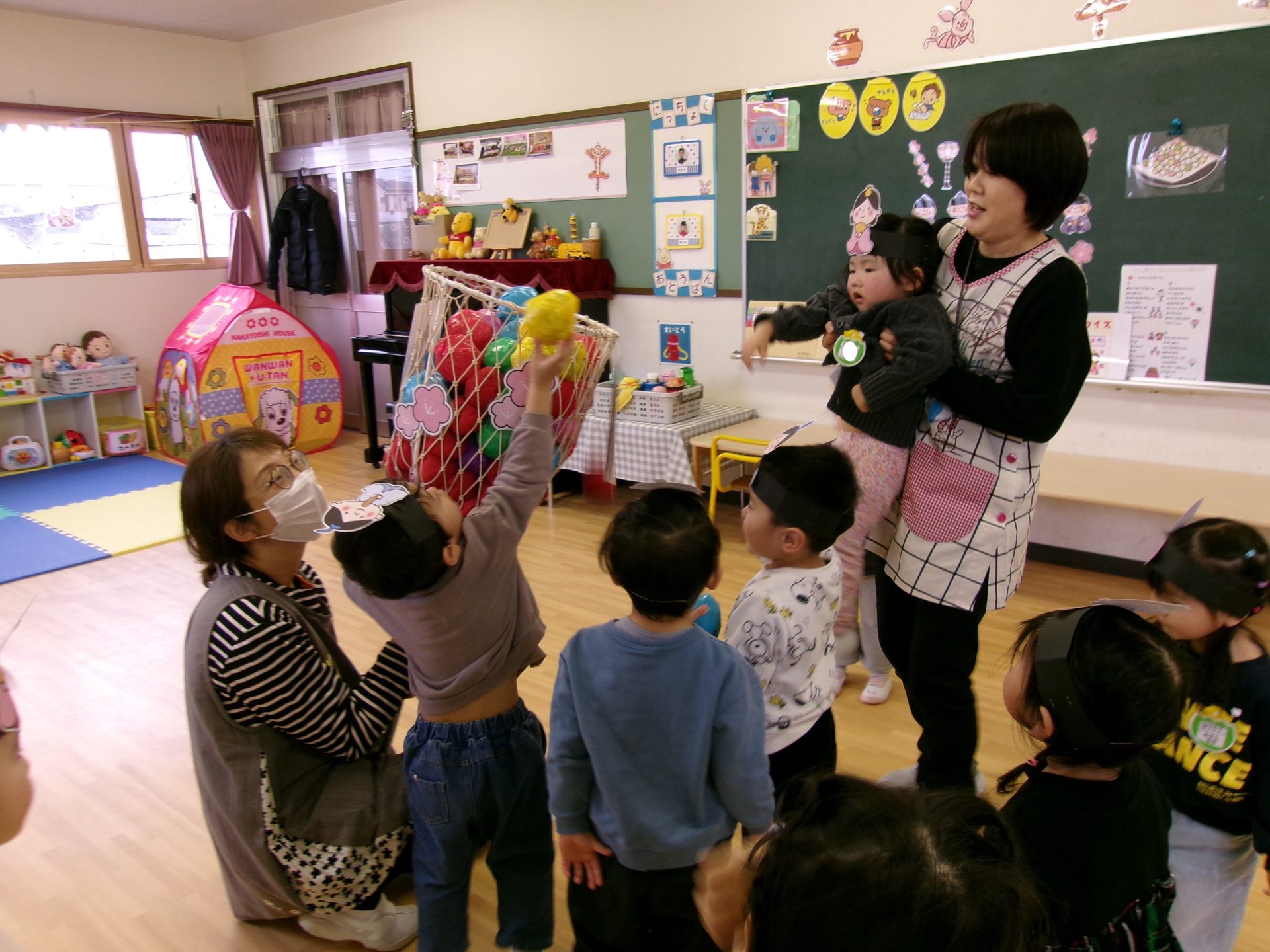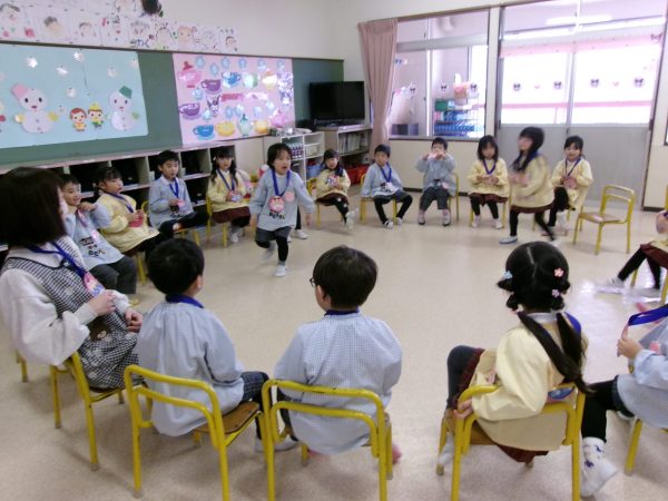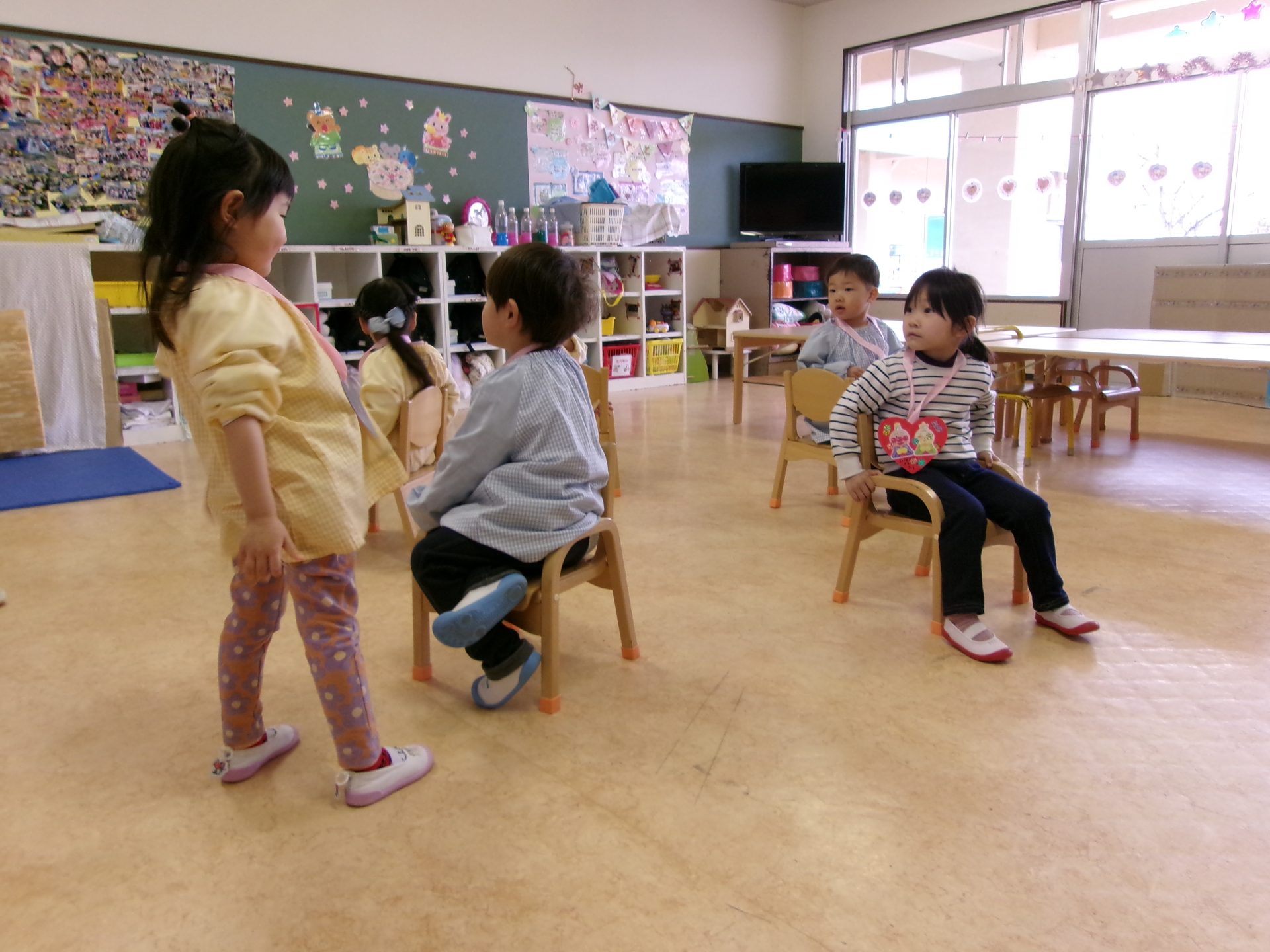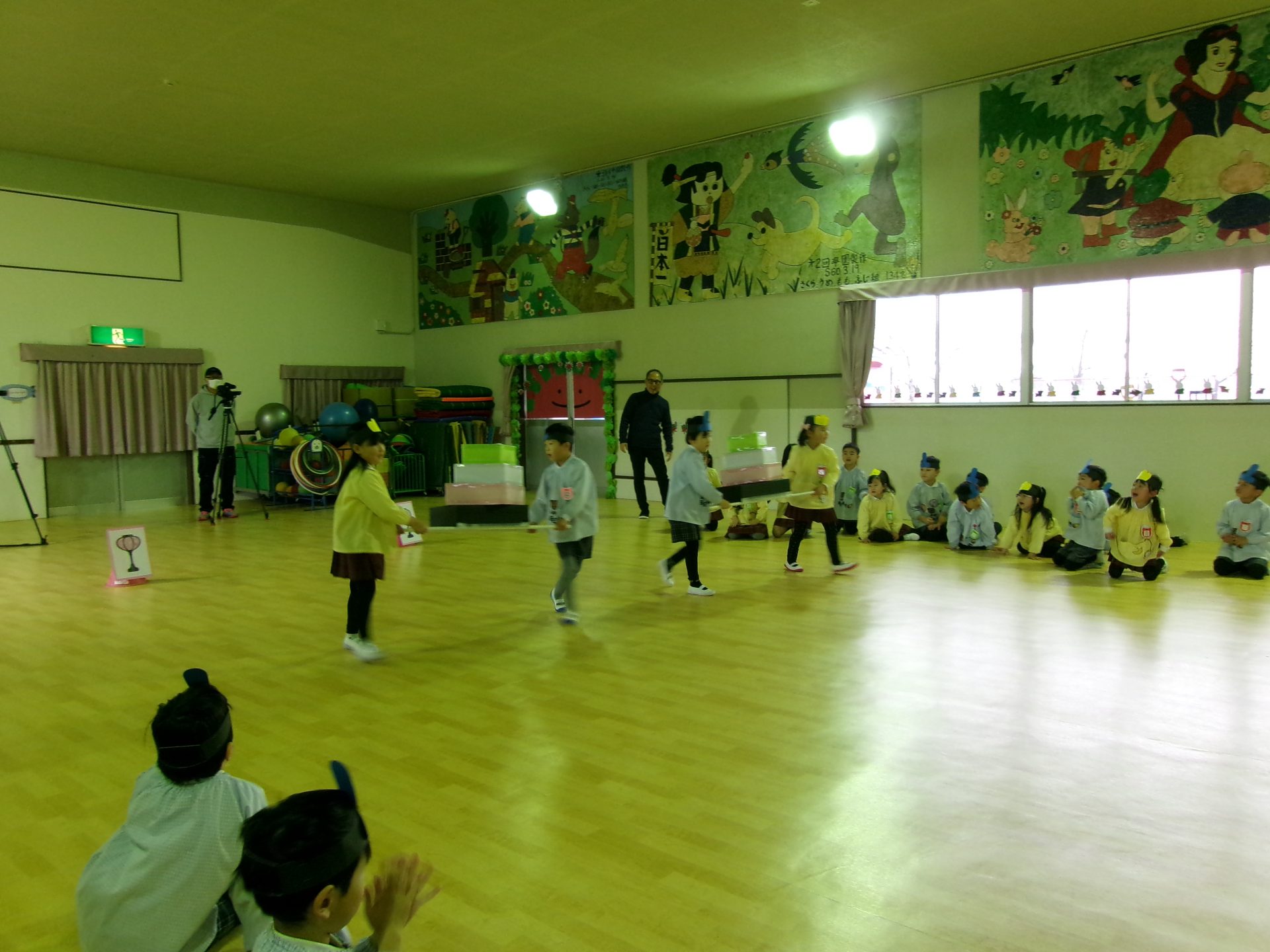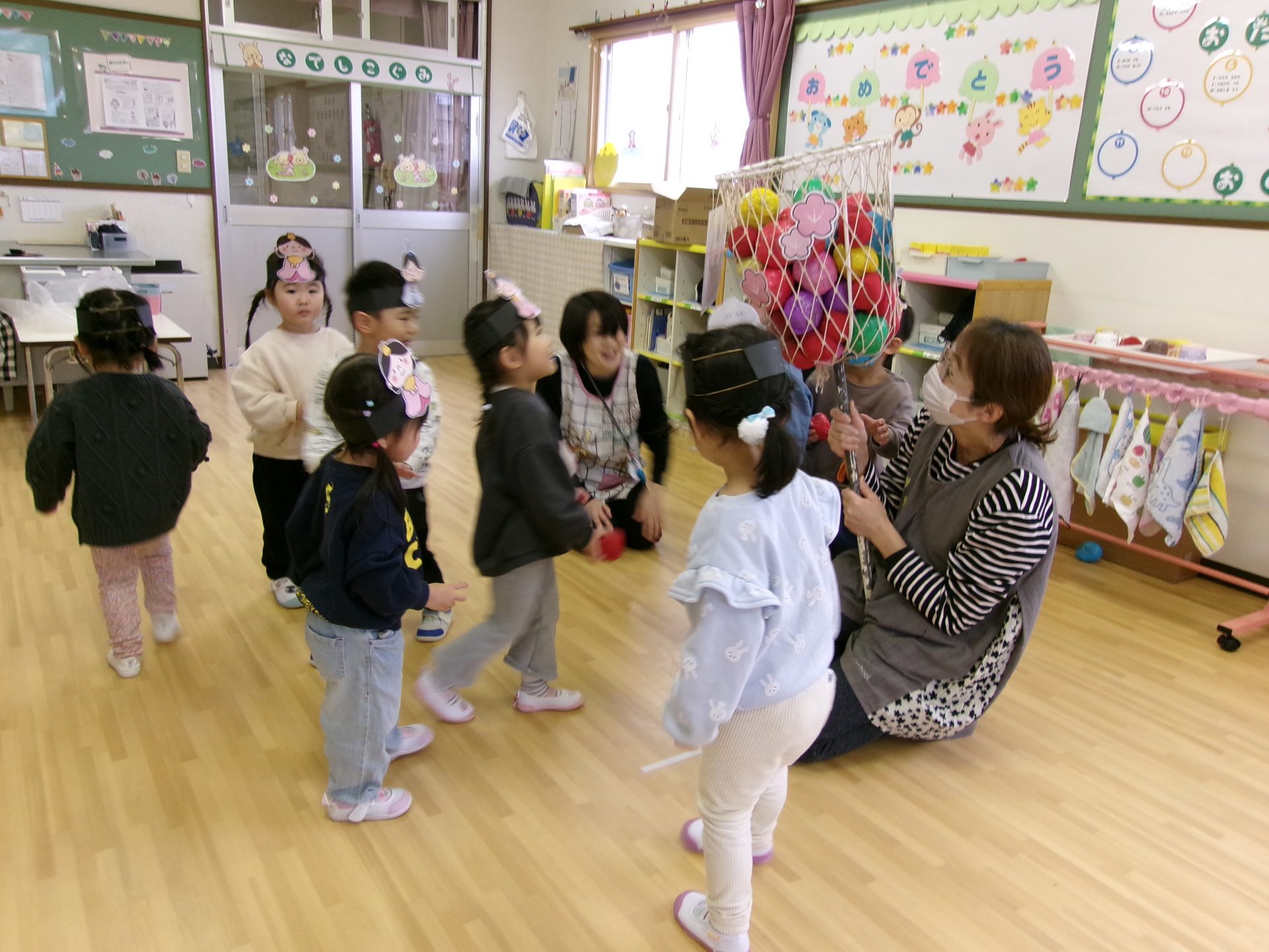 4年保育、年少・年中さんは、各クラスで「ひなまつり」にちなんだゲームを楽しみました。