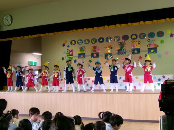 4年保育のお友だちは、今回クラスごと全員一緒にお遊戯を行いました。