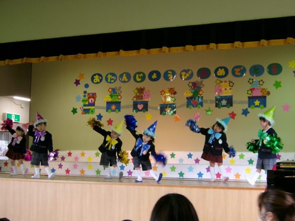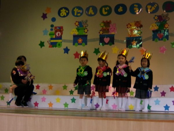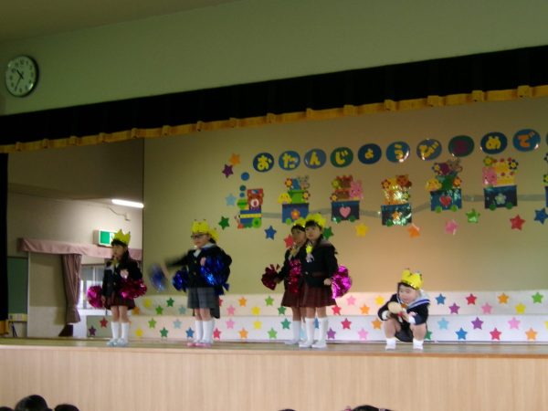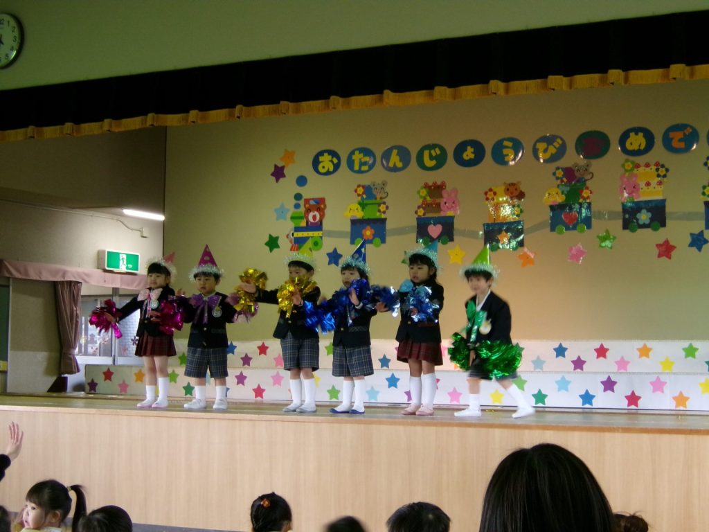 年少・年長さんと4年保育のお友だちの誕生会が体育館で行われました。