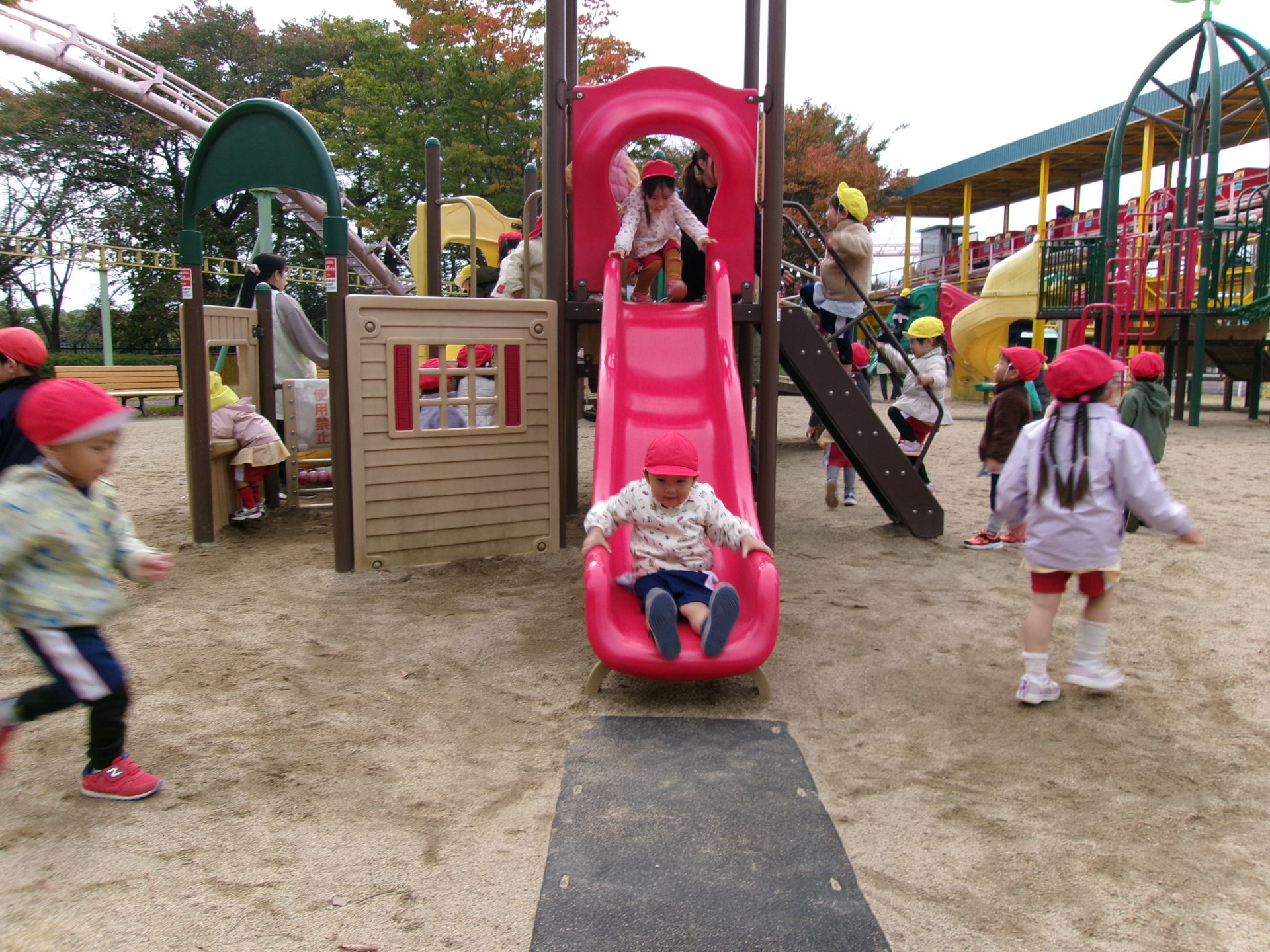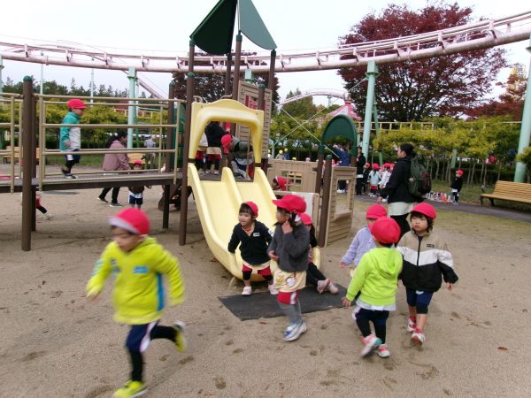その後、わんぱく広場に移動し遊具で遊びました。