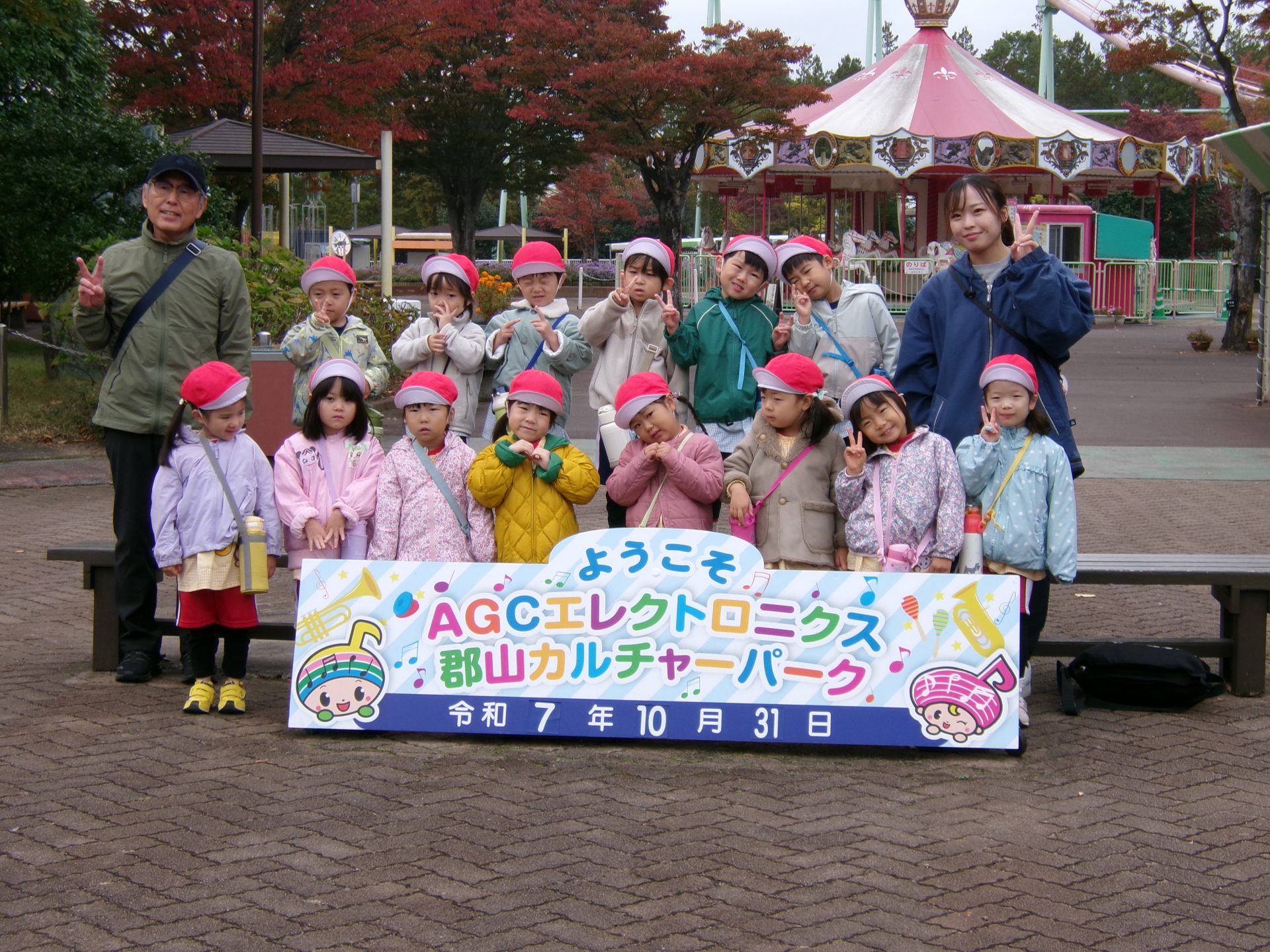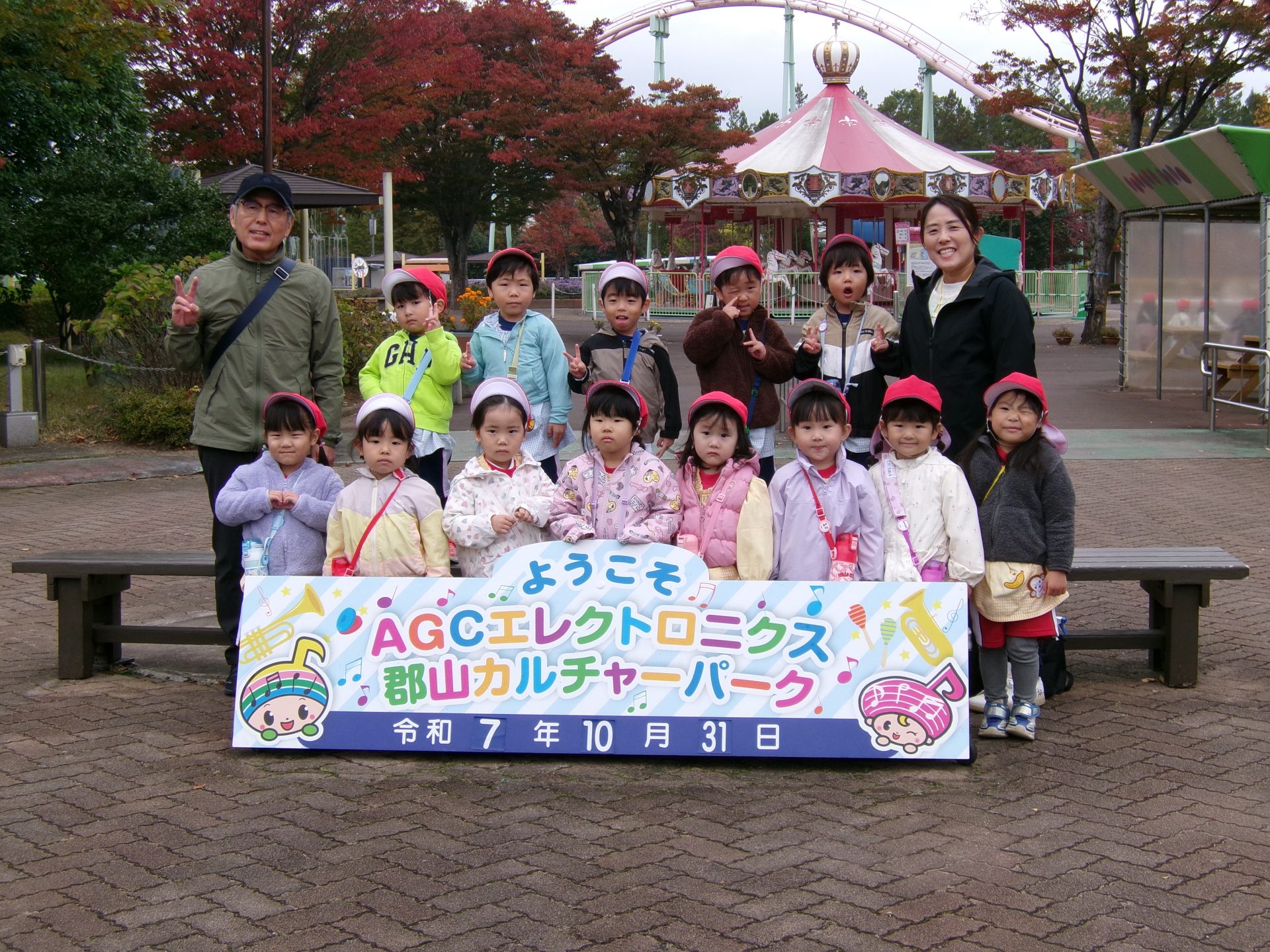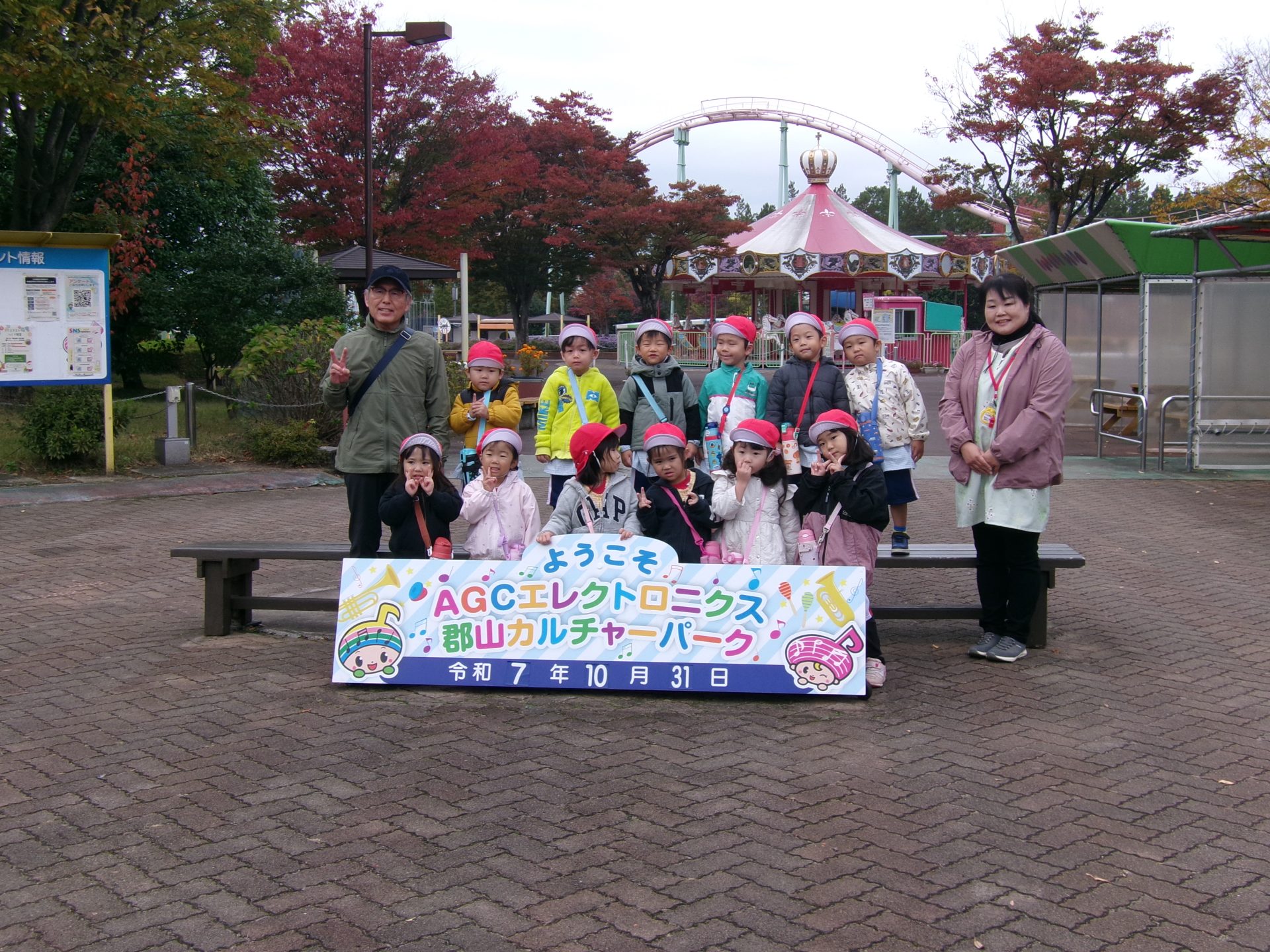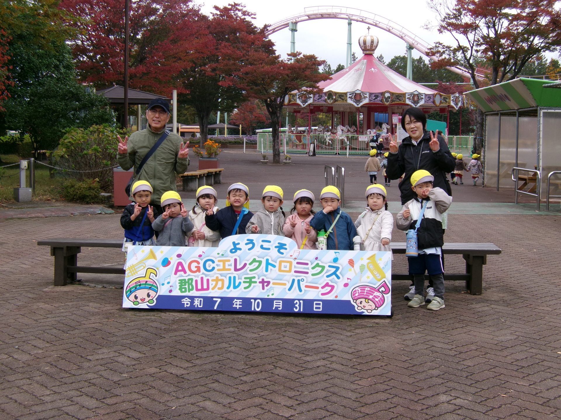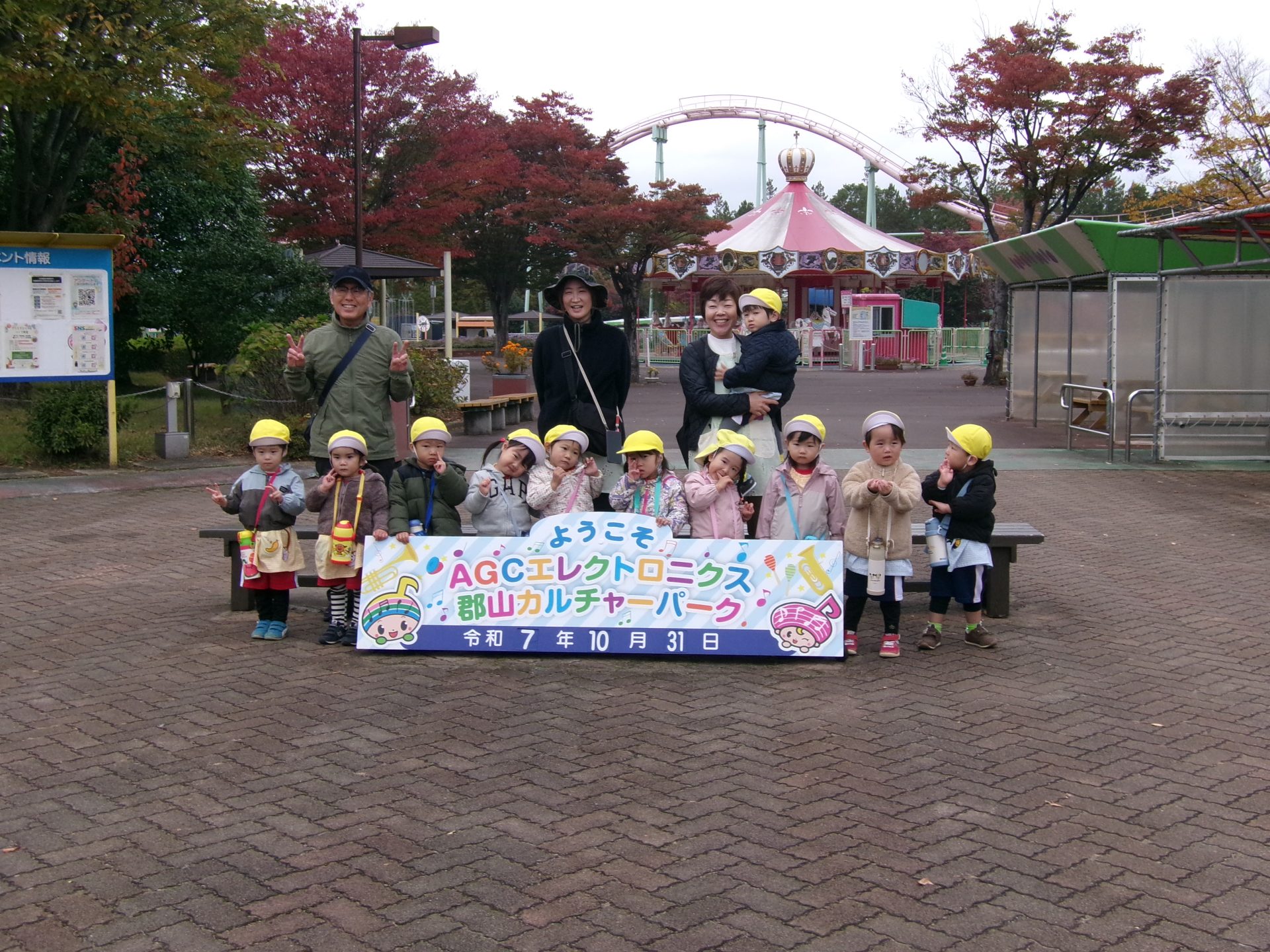 年少と満3歳児の子どもたちが、園バスでカルチャーパークに出かけました。