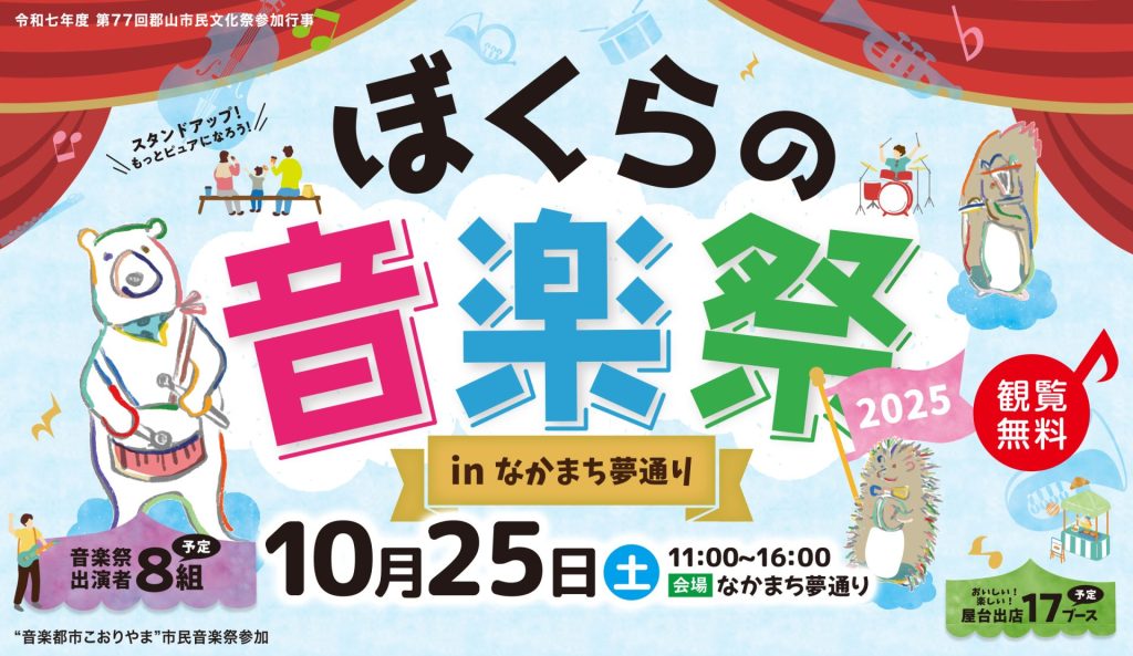 運動会や鼓笛移杖式で堂々の演奏を披露した日本太鼓隊のお友だちが、25日(土)に行われる「ぼくらの音楽祭」に参加します。 日本太鼓隊にとっては最後の発表になります。 機会がありましたら足をお運びください。 【ぼくらの音楽祭】 〇日時 10月25日(土)11時から(日本太鼓の発表は11時15分頃です。) 〇場所 なかまち夢通り うすい百貨店前 ⇒ぼくらの音楽祭HP