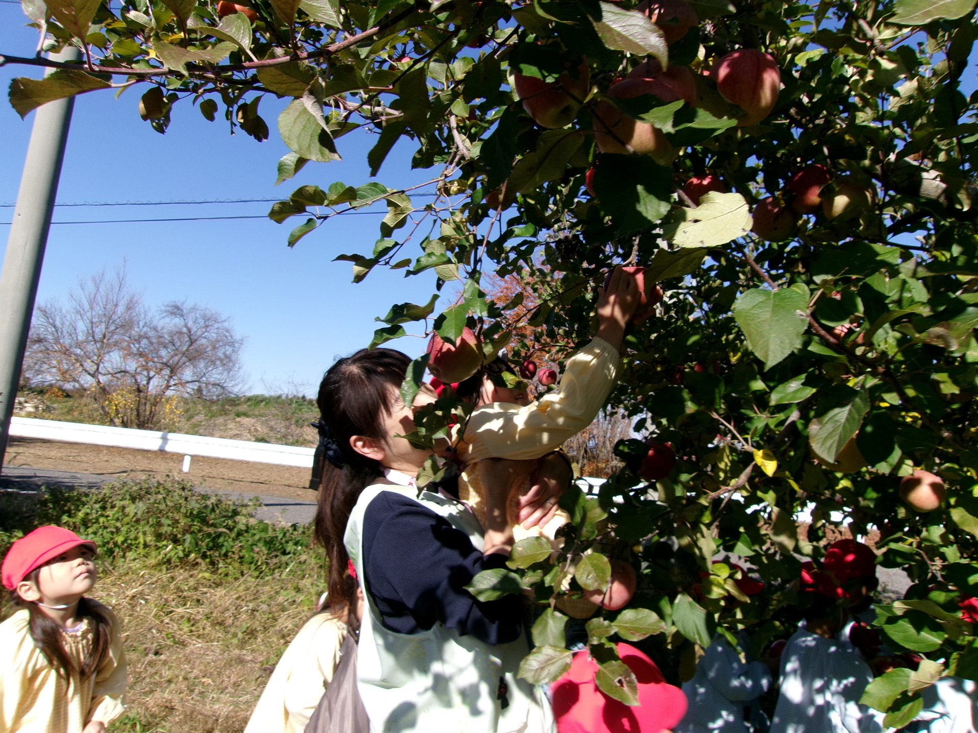 りんご園では、大きな赤いりんごをじょうずにとることができました。