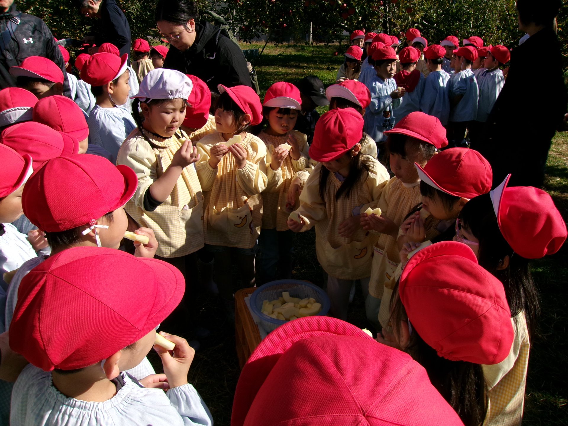 用意していただいたりんごを食べた子どもたちからは「おいしい!」という声がたくさん聞かれました。