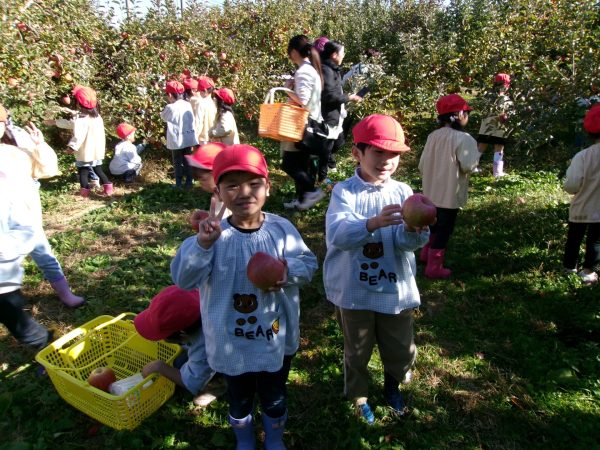 幼稚園生活最後のりんご狩り、心に残る楽しい行事になりました。