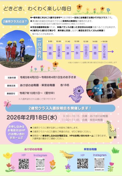2歳児(4年保育)説明会があります!