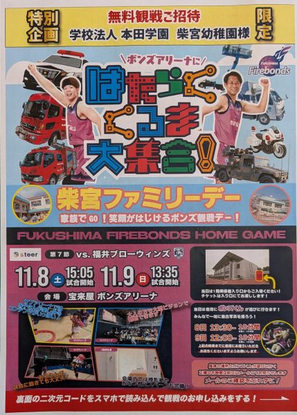 ファイヤーボンズを「応炎(応援)」に行きませんか?~柴宮ファミリーデー~