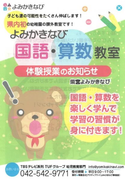 「柴宮よみかきなび」体験授業、参加者募集中!~保育参観日(12/6)に実施~